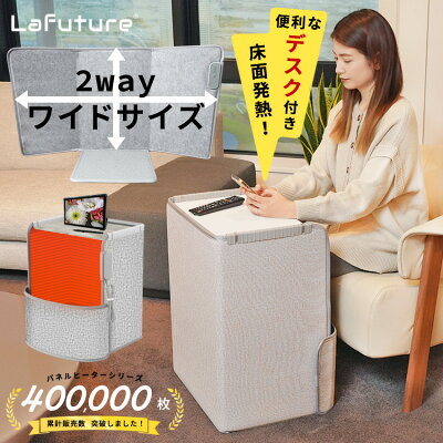 「Lafuture(ラフューチャー)6面プレミアムパネルヒーター」は、天面・床面を含む5面パネル構造で、さらに外付けカバーがついているモデルです。多方面から熱を発することで、足元を効果的に保温します。