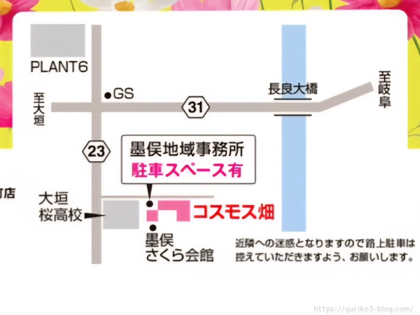 ・墨俣コスモス畑の場所とアクセス、駐車場